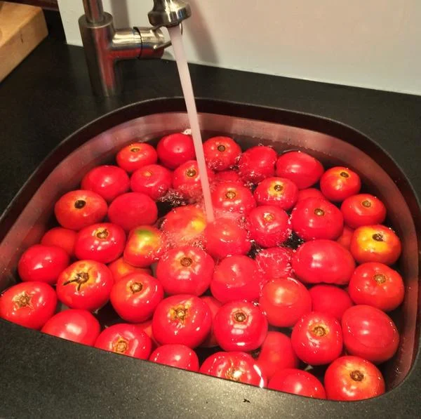 - 20lbs tomatoes, washed and stemmed, discarding bruised portions